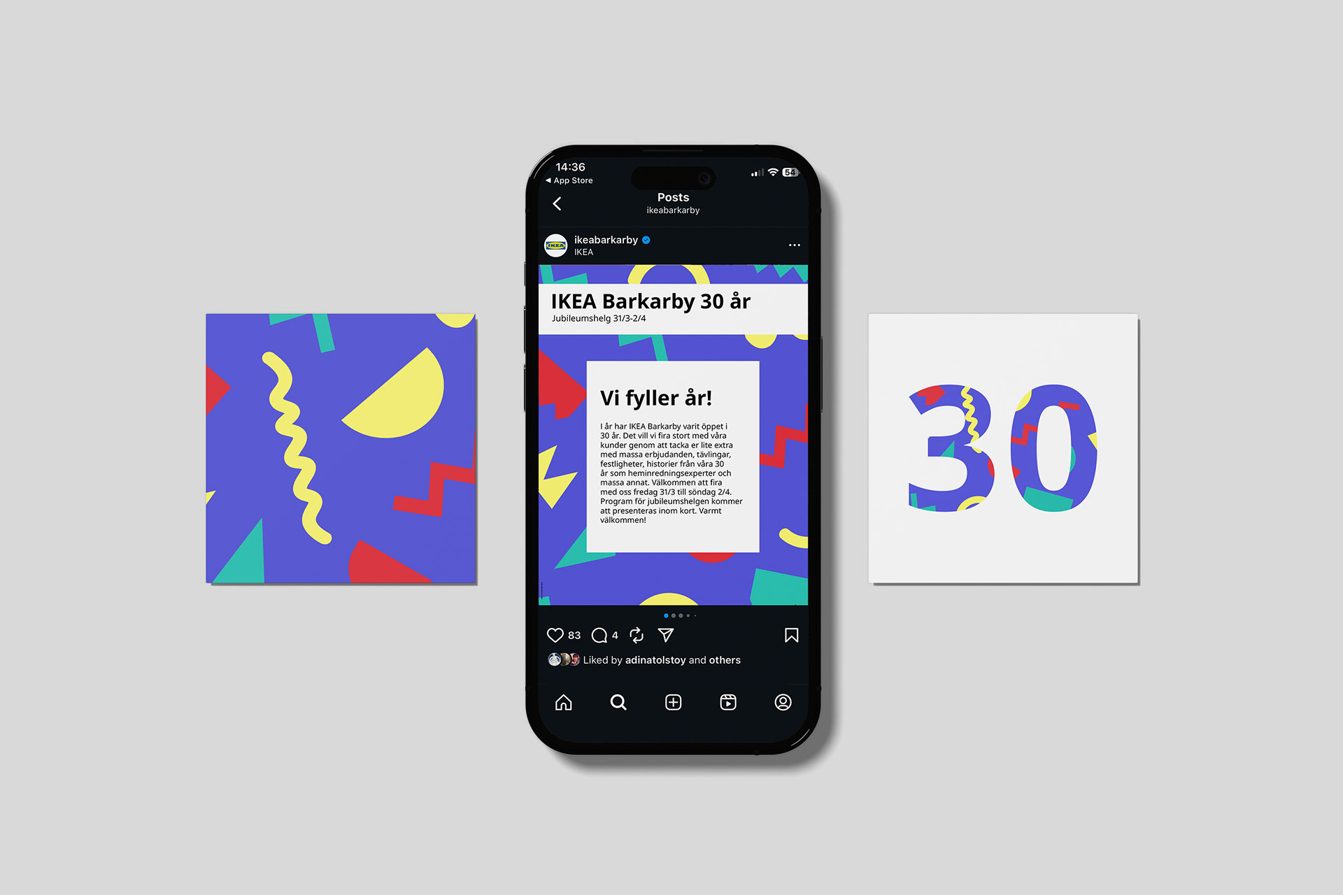 IKEA Barkarby celebrated 30 years anniversary and needed visual material to communicate this to both customers and employees.