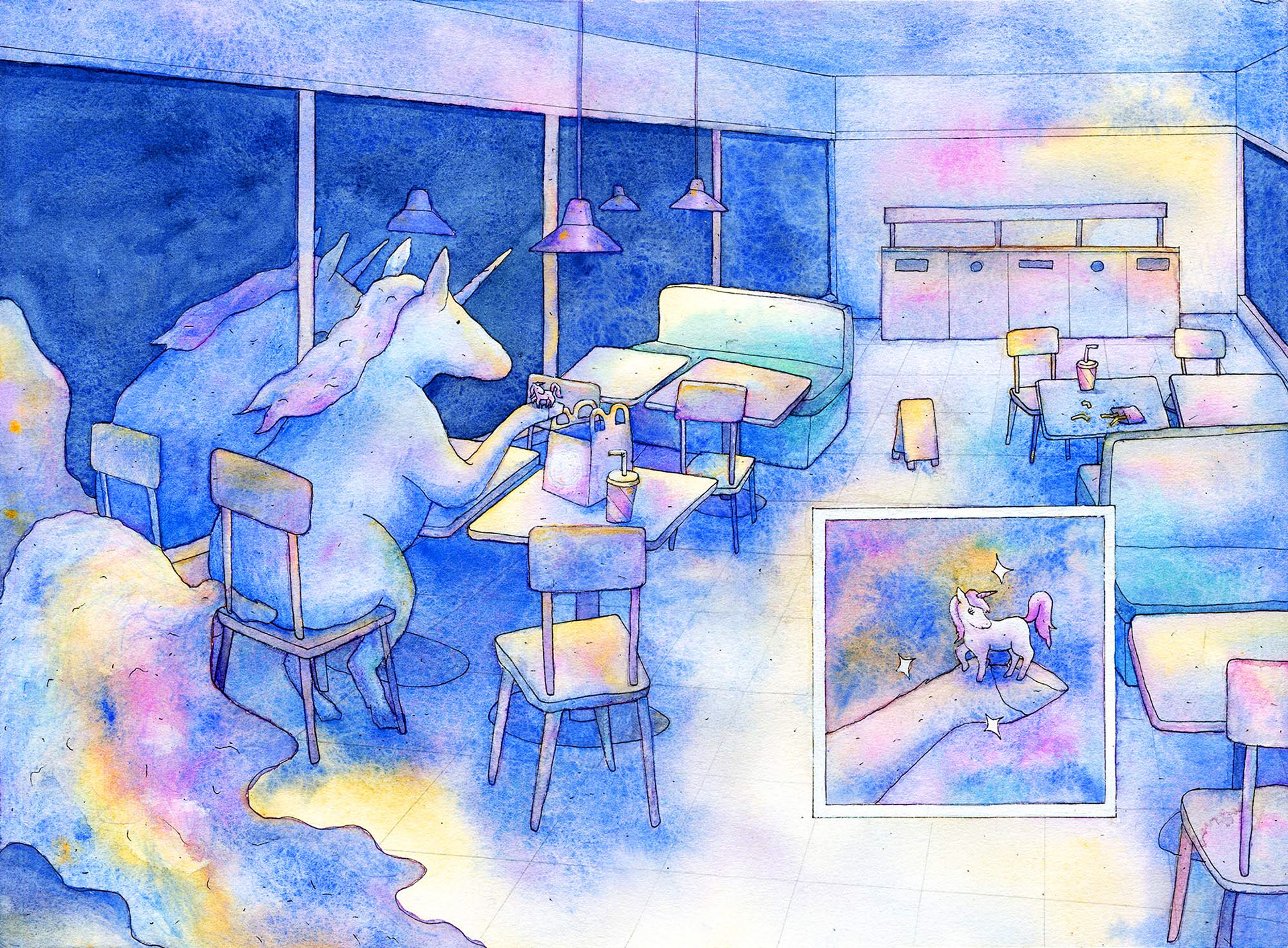 An illustration project about 'The myth of cuteness' where I explored visual communication aimed for children, and the unicorn as a symbol changing through history.