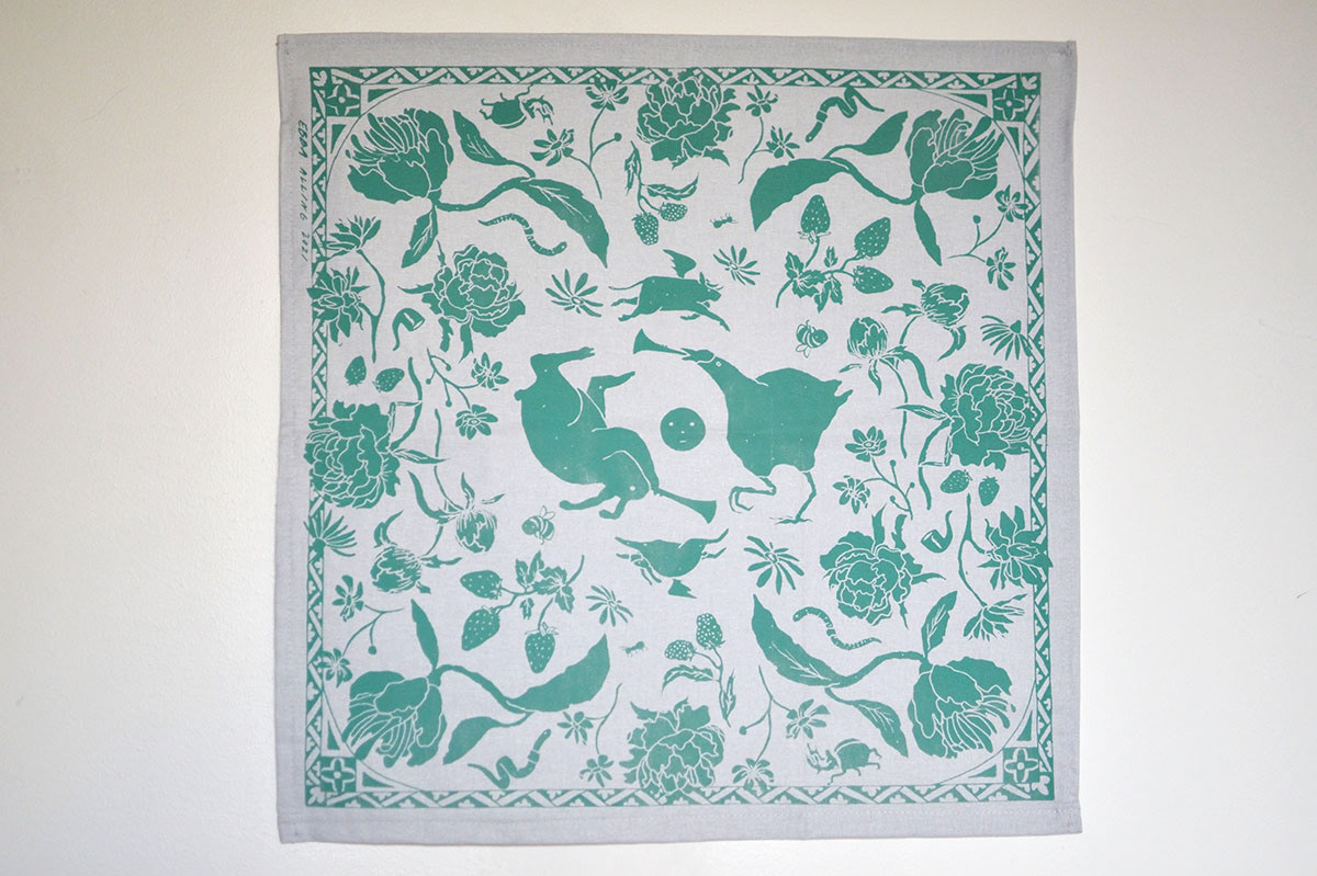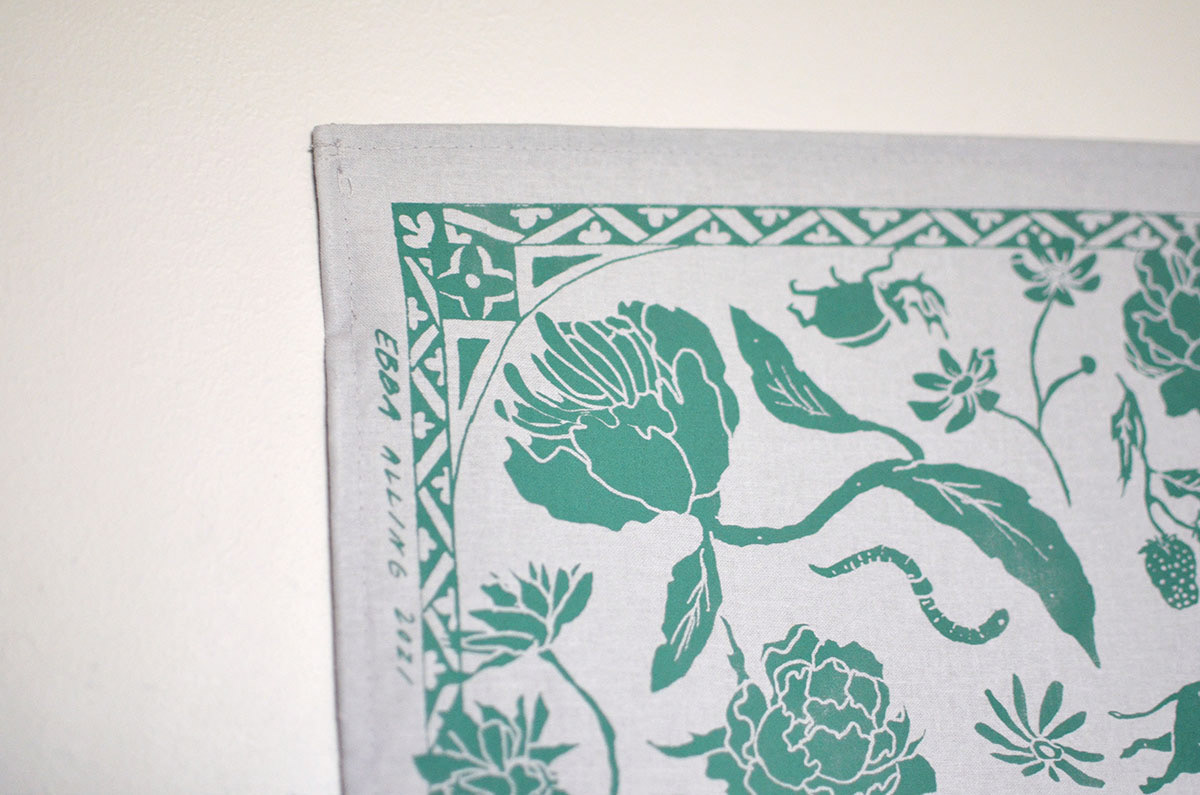Hand drawn and screen printed on cotton in 2021.
